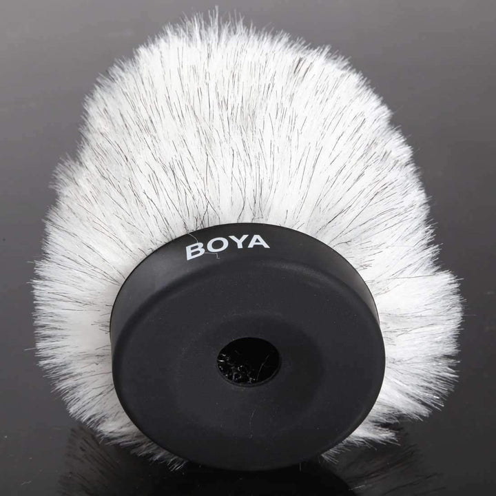 Softies are made in eight different lengths with three hole sizes to fit a wide variety of microphones. They are designed for quick push-on-pull-off, ENG-style use in the field without sacrificing most of the wind protection offered by the modular system. BOYA BY-P80 furry outdoor interview windshield muff for shotgun capacitor microphones.
