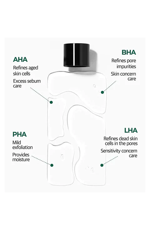 AHA, BHA, and PHA ingredients gently work to scrub off dead skin build-up from the skin's surface.