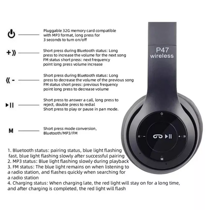 Wireless Bluetooth 5.0 Headphones Headset Over-Ear FM Radio MIC